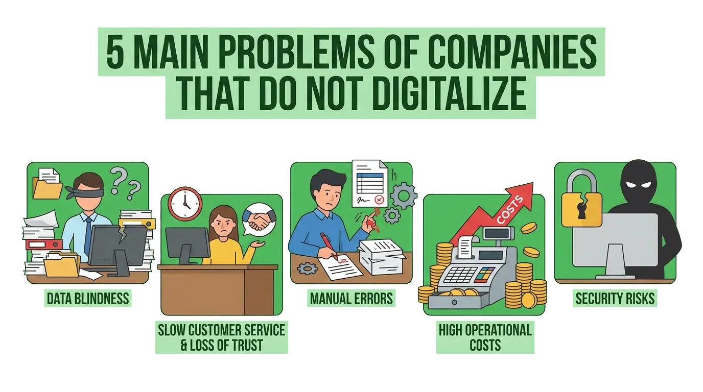 Müasir biznes mühitində rəqəmsallaşma artıq "olsa yaxşı olar" kateqoriyasından çıxıb, "olmasa batarsınız" kateqoriyasına keçib. Təsəvvür edin ki, rəqibləriniz Formula 1 bolidi ilə yarışır, siz isə hələ də at arabasını təkmilləşdirməyə çalışırsınız. Texnologiyanı inkar edən şirkətlər təkcə sürət itirmir, onlar tədricən bazarın görmə bucağından itirlər. Ənənəvi üsullarla idarə olunan bizneslər bu gün 5 kritik problemlə üz-üzə qalırlar ki, bu da onların sonunu gətirə bilər.