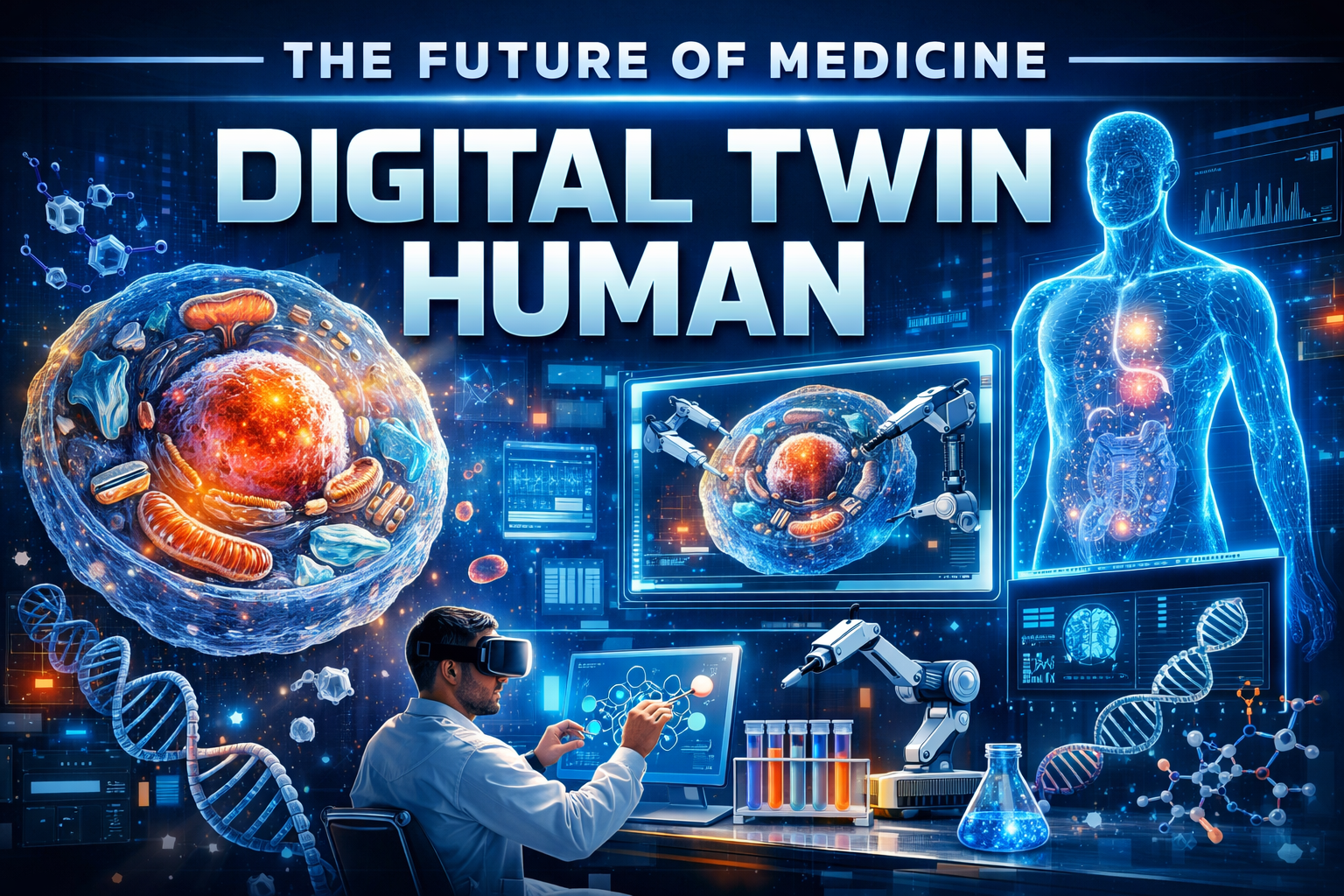 In 2026, at the intersection of biotechnology and artificial intelligence, one of the most ambitious projects is the creation of a complete digital model of the human cell. This concept is known as the “Digital Twin Human,” and its goal is to simulate the molecular-level behavior of a living cell within a computational environment.